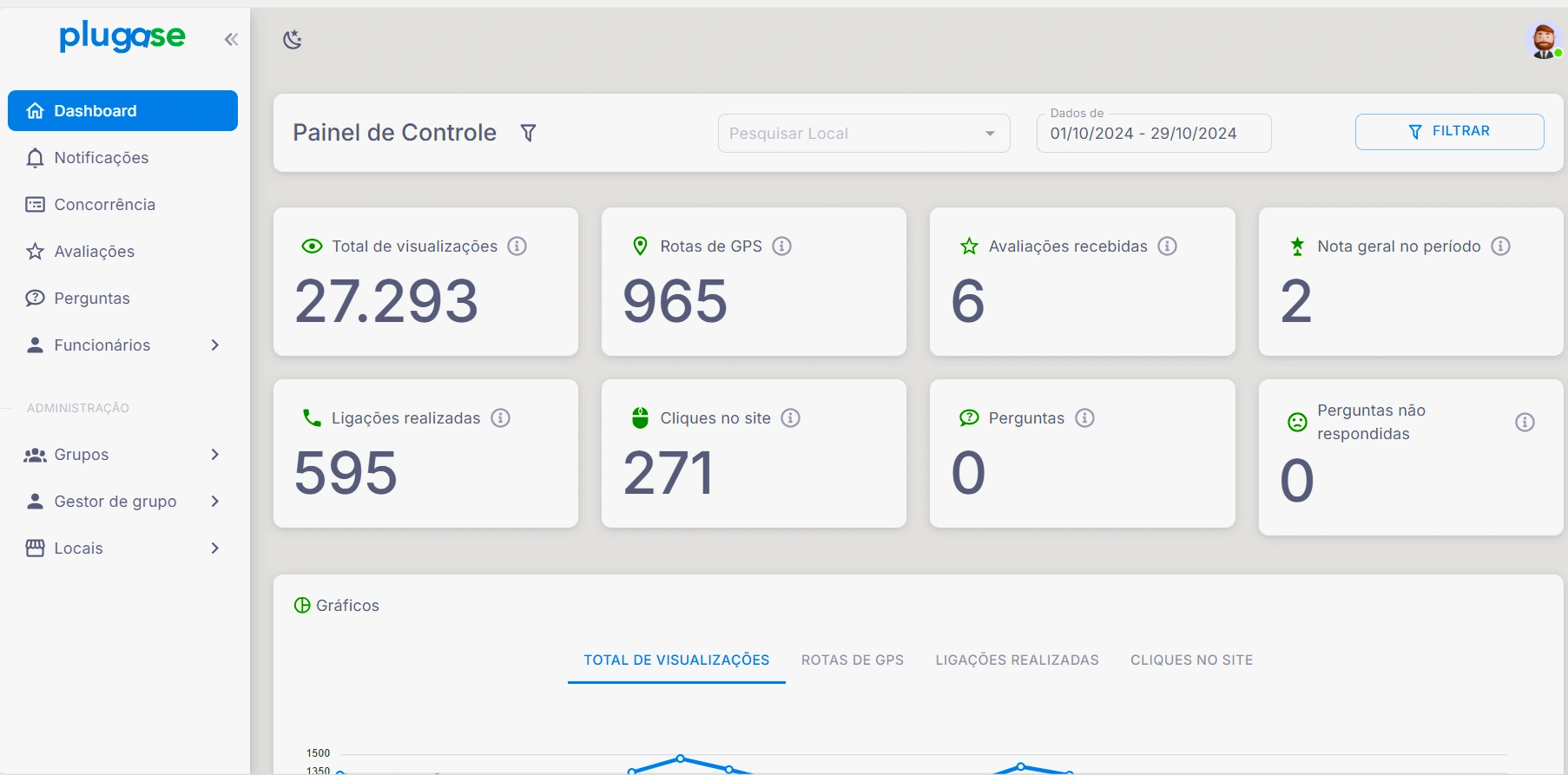 No ambiente digital competitivo de hoje, ser encontrado é crucial. Com o Plugase, sua empresa ganha as ferramentas necessárias para se destacar no Google Meu Negócio e aumentar o alcance local de forma estratégica. Nossa plataforma oferece um diagnóstico detalhado, monitoramento em tempo real e insights valiosos para ajudar você a atrair clientes que estão na sua cidade buscando exatamente o que seu negócio oferece.